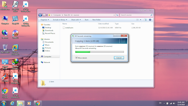 Cuối cùng bạn chỉ cần mở bộ cài windows 7 gốc bằng phần mềm UltraISO vào thư mục sources của bộ cài xóa tập tin install.wim gốc đi sau đó kéo thả tập tin install.wim mới vào thay thế còn tập tin autounattend.xml thì kéo vào nằm bên ngoài cùng với thư mục sources